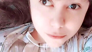 Chunky Asian babe rubbing her ample tacco thinking she's glorious