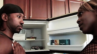 Stepson with monster cock romps his mature step-mother in the kitchen