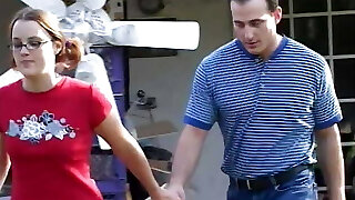 Barely 18 slut in specs blows pop's big rock-hard cock then gets cum in rosy pussy