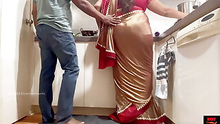 Indian Couple Romance in the Kitchen - Saree Sex - Saree elevated up and Ass Spanked