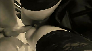 British whore Michelle B in a double penetration scene in nylons