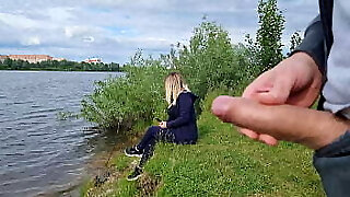 The exhibitionist fellow witnessed a lonely nymph in nature and took out his pecker in front of her and began to jerk the dick in front unfamiliar sweetie, he risks panicking her, but she likes to look at a big male dick and wants to see his cumshot