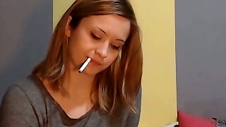 BLONDE GIRL ENJOY HER CIGARRETE WITH A Faux-cock STICK IN HER Tight PUSSY