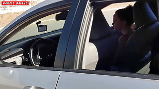 Sexually Aroused girlfriend stops her bf's car to blow him with intensity