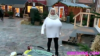 hijab große fette arschbeute weiße vollbusige reife milf geht im freien in sexy minikleid spazieren und blinkt riesigen knackarsch in der öffentlichkeit