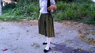 trainingskleidung ist super heiß auf diesem küken, das in der öffentlichkeit eine banane fickt