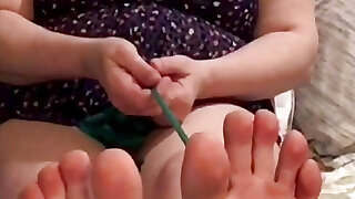 amateur teen beugt wadenmuskeln hautnah