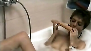 Lustful chick needs strong monstrous cock but she has only rubber fake penis
